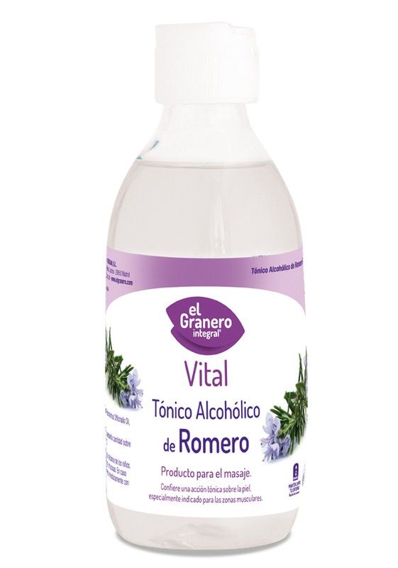 Tónico Alcoholico de Romero 250 ml de El Granero es un producto de uso higiénico y/o cosmético indicado para potenciar y/o mejorar el aspecto físico y en consecuencia la salud general de las personas que lo utilizan.